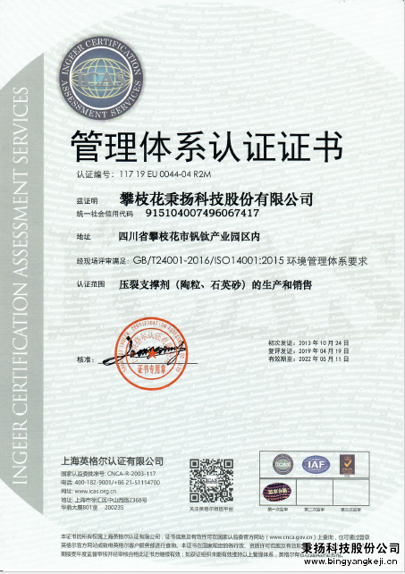 • 環(huán)境管理體系證書